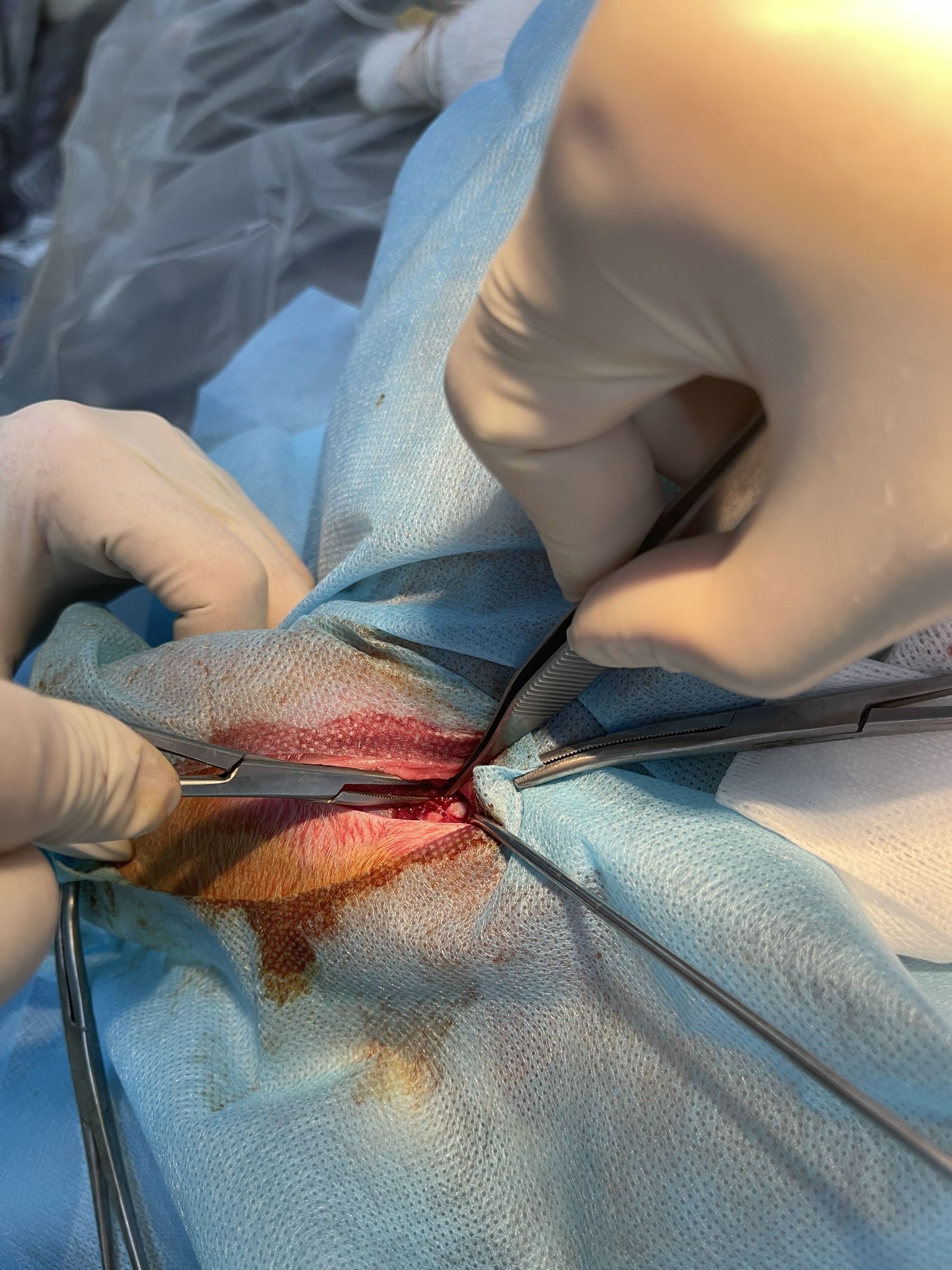 - Chuẩn bị vùng phẫu thuật: Cạo lông, sát trùng kỹ vùng xung quanh chân.