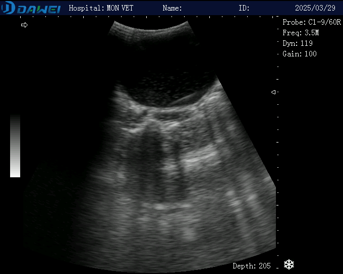 Hình ảnh siêu âm sỏi bàng quang tại phòng khám thú y MonVet- Cẩm Phả.